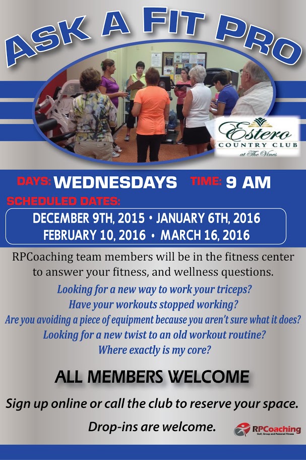 RPCoaching team members will be in the fitness center to answer your fitness, and wellness questions.